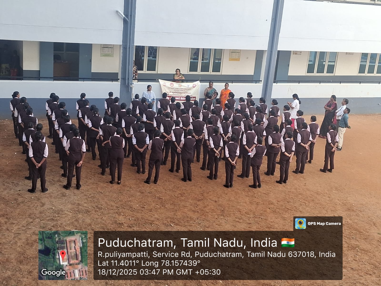 The Social Welfare and Women Empowerment Department, Government of Tamil Nadu, Namakkal, organized an awareness camp on 18.12.2025 at our institution on the theme “Kuzhanthai Thirumanam Illatha India” (Bal Vivah Mukt Bharat) to promote the prohibition of child marriage. The event aimed to educate students about the harmful effects of child marriage and to emphasize the importance of girls’ education and empowerment.