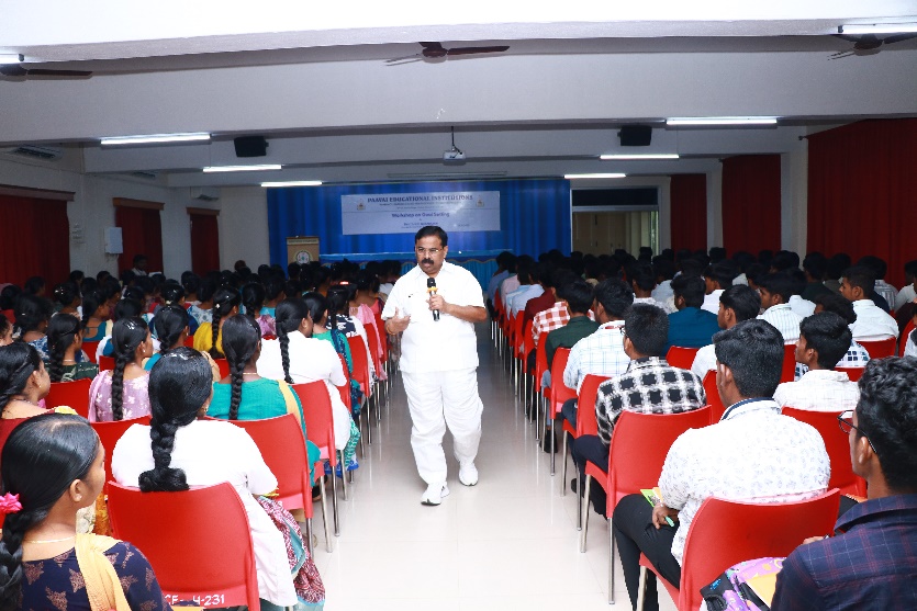 A Five day Induction Programme for the 1st year students of Paramedical was held from 01.11.2025 to 06.11.2025 at Pragathi hall. Seventeen formal sessions by resourceful speakers benefitted the students. Shri.CA.N.V.Natarajan Chairman, Paavai Educational Institutions delivered his speech on the title “Goal Setting”. In his session, he interacted with the students about the need of the Goal Setting Programme. He quoted Abdul Kalam sir’s words and made all students repeat those words. He defined goals and explained the idea of preparation to accomplish their goals. He correlated his life incident of setting a goal at the age of 17 and how he could make that come true. Sir emphasised the importance of setting a goal and elaborated the seven points where students have to equip themselves with necessary skill sets to shine in their careers. He expounded on fixing smart goals and thus threw light on the word, ‘SMART’. He elucidated the seven steps for goal setting and also instructed everyone to create a vision of who they want to be in the next ten years. He listed the six components to sustain victory namely genuine goals, right pathway, constant and continuous efforts, hard and smart work, high discipline and God faith. Finally, Sir concluded by stating that,” set your goal, shape your future and be a leader”.