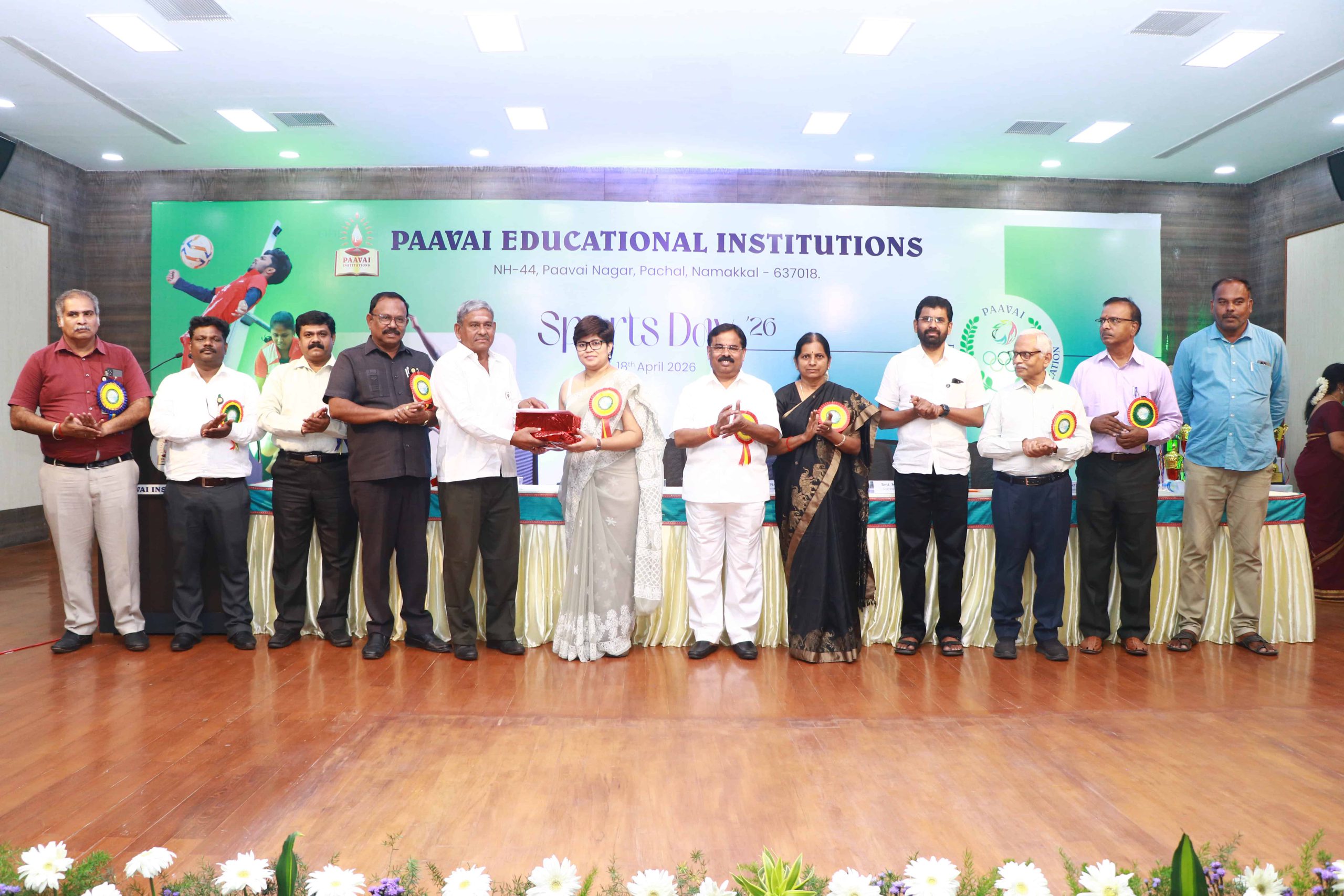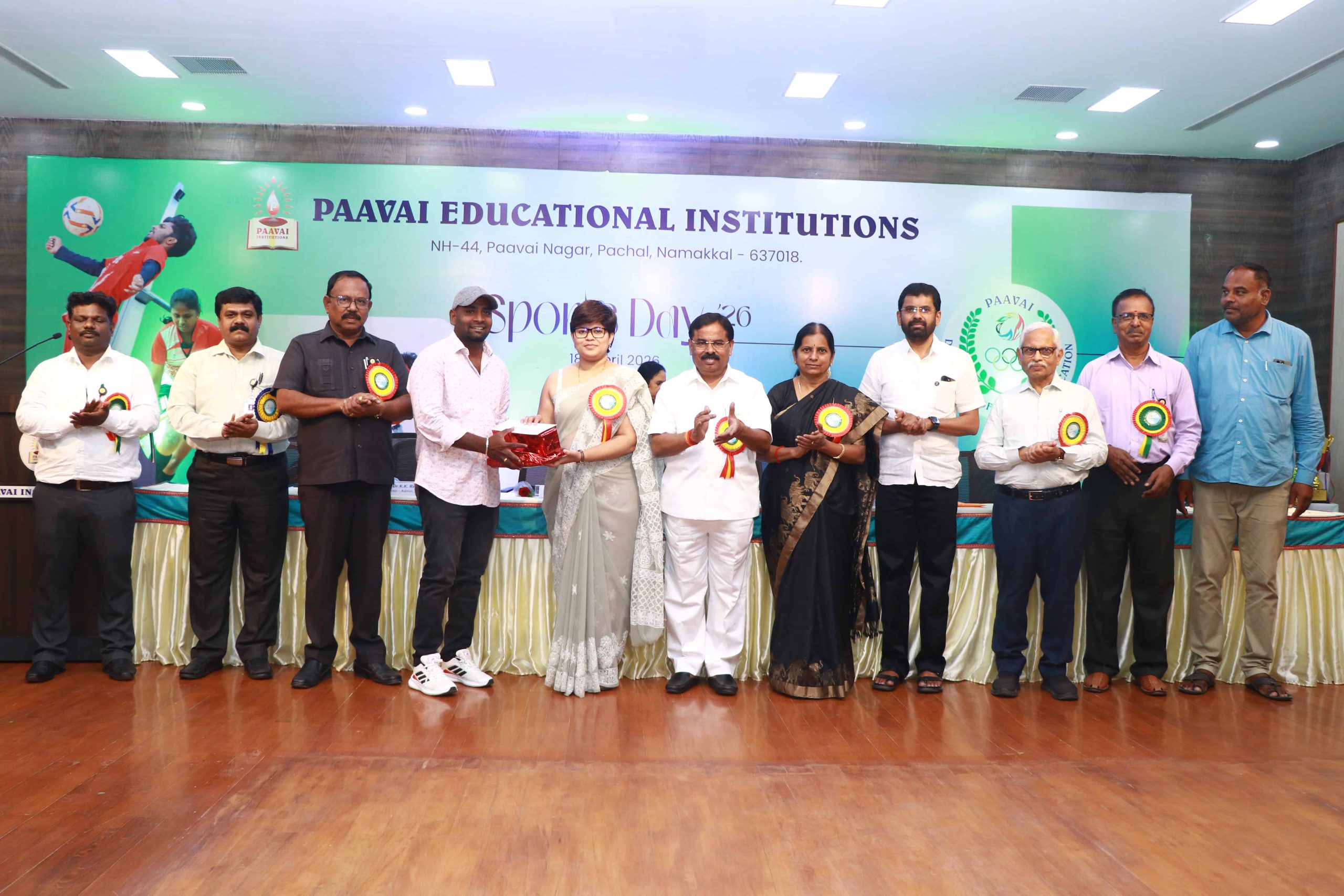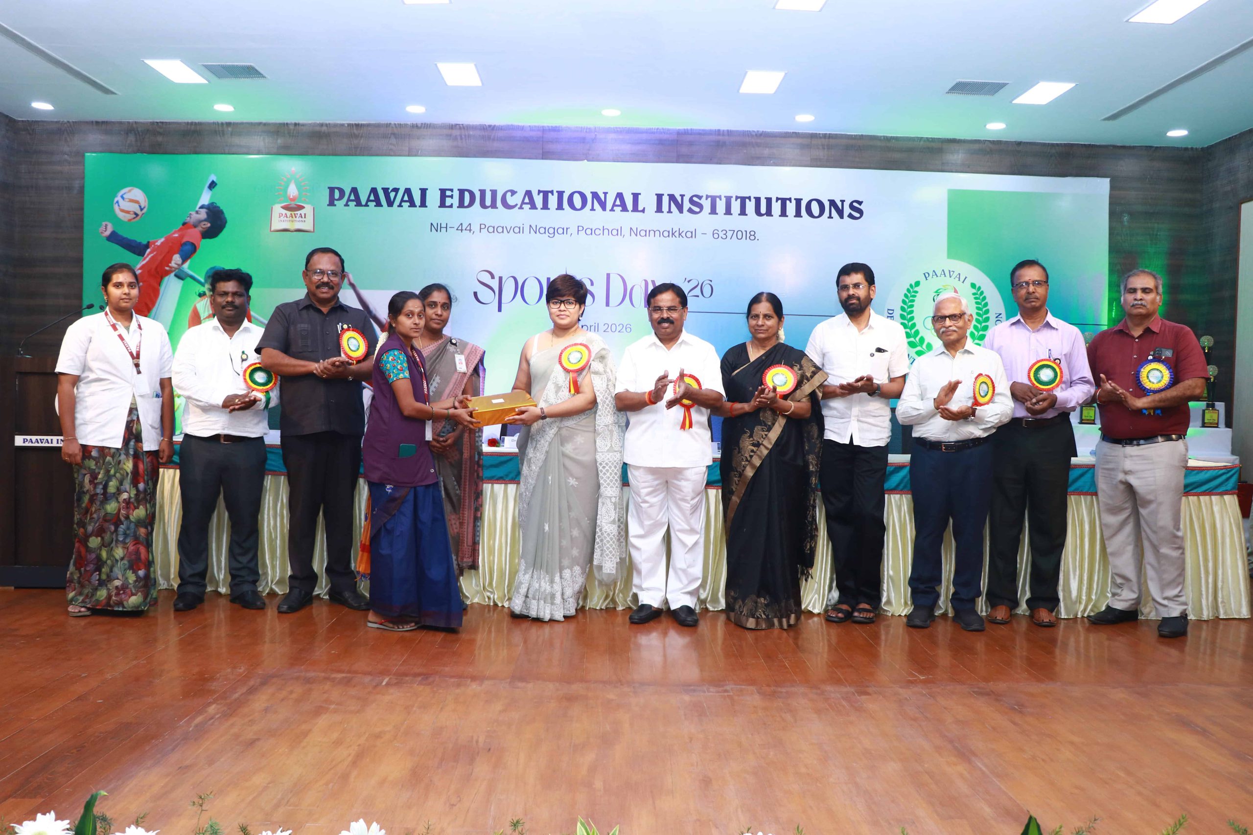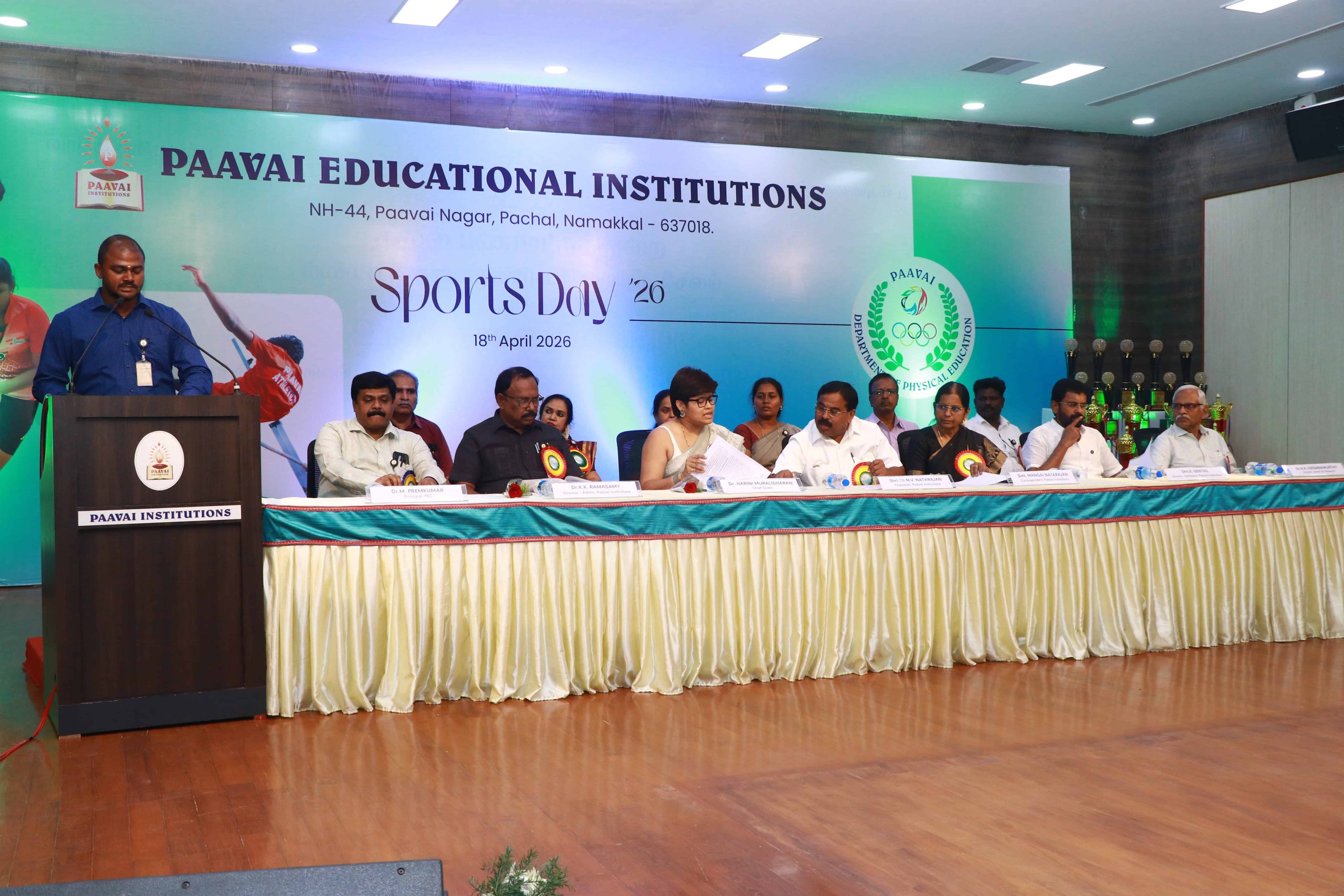 The Sports Day celebration was held at Paavai Educational Institutions. The Founder and Chairman of Paavai Educational Institutions, Shri CA N. V. Natarajan, presided over the function and delivered the presidential address.
