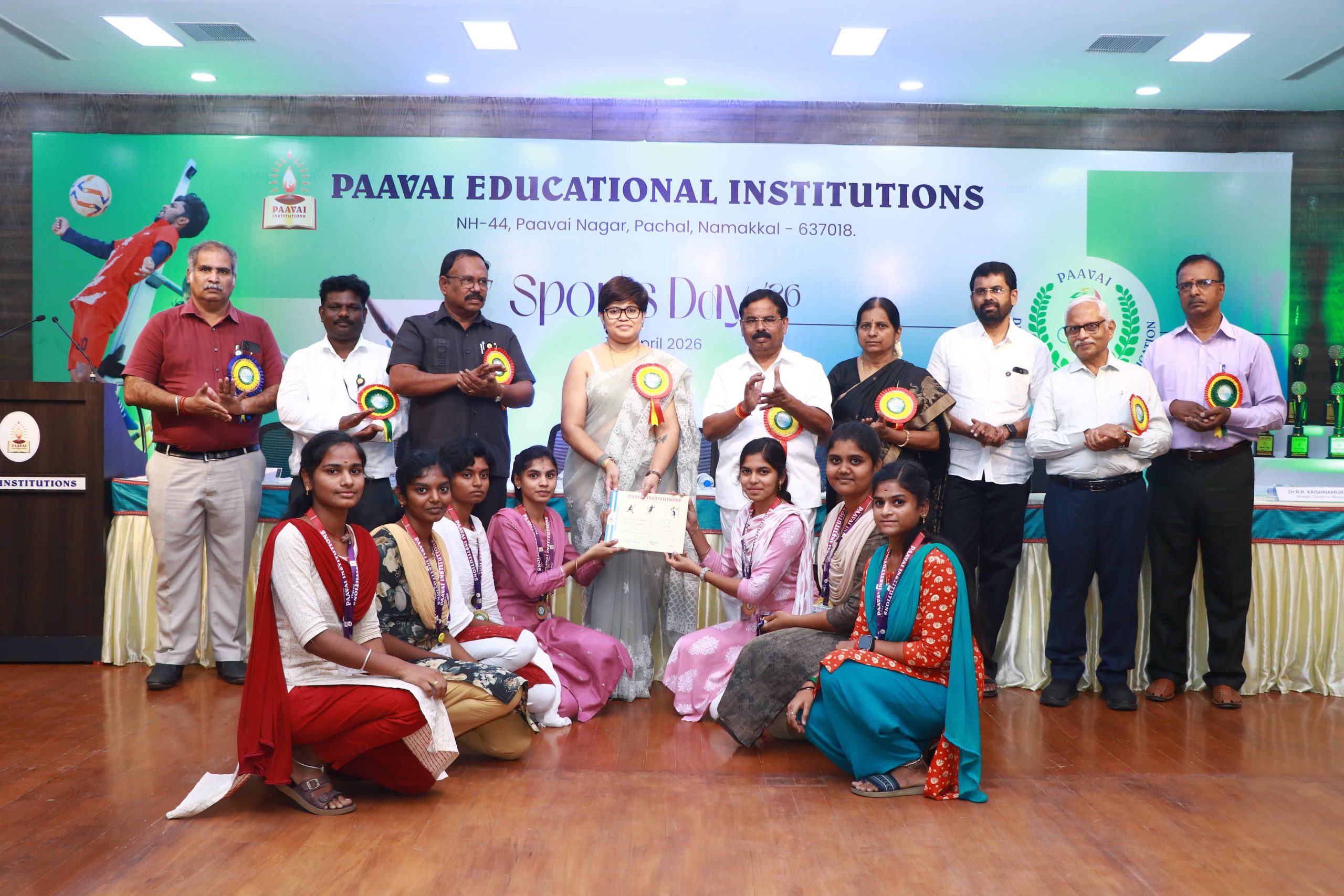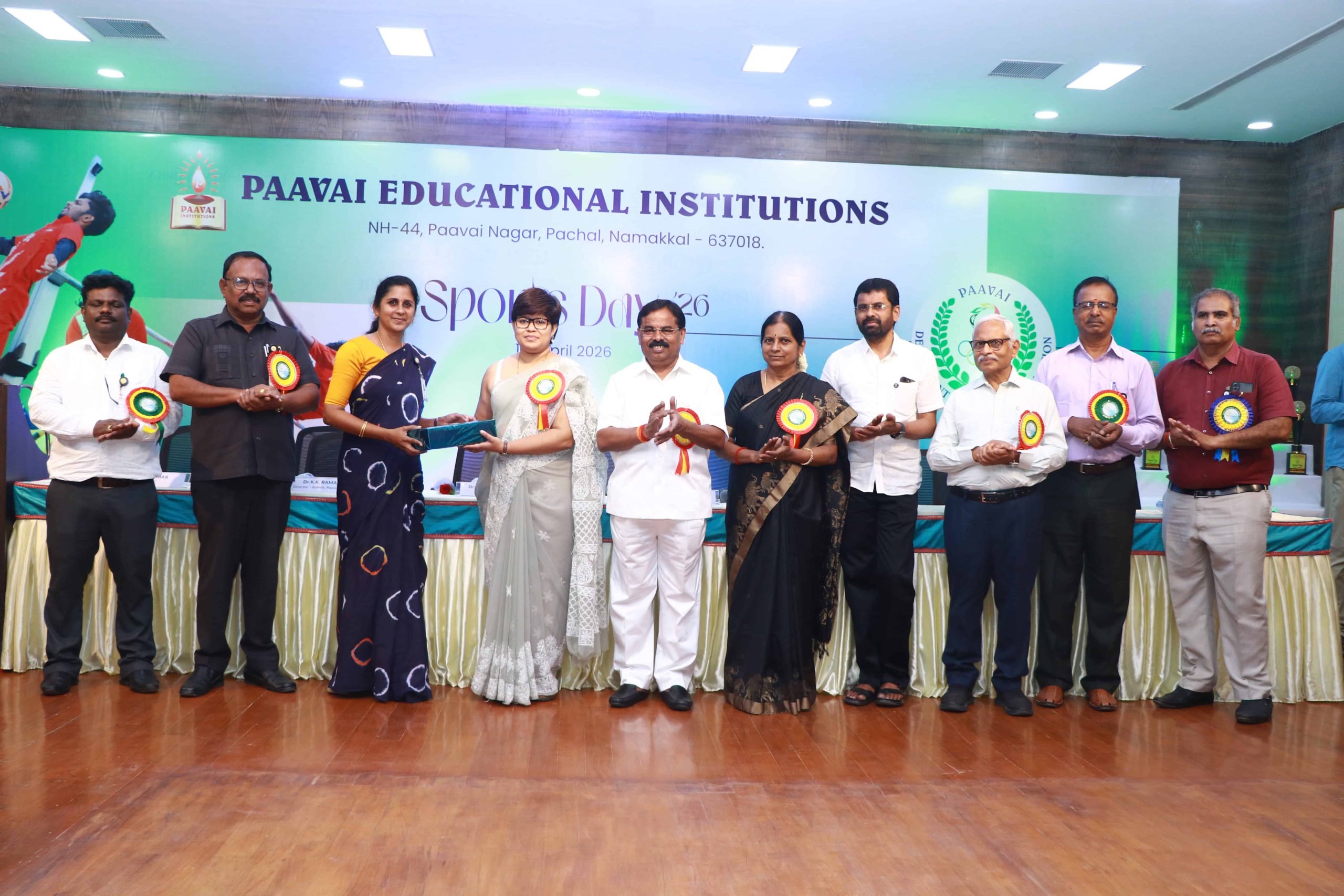She expressed her delight at the availability of international-standard sports facilities on campus and noted that such efforts have contributed to Paavai Educational Institutions winning the Anna University “Champions of Champions” title continuously for ten years.
